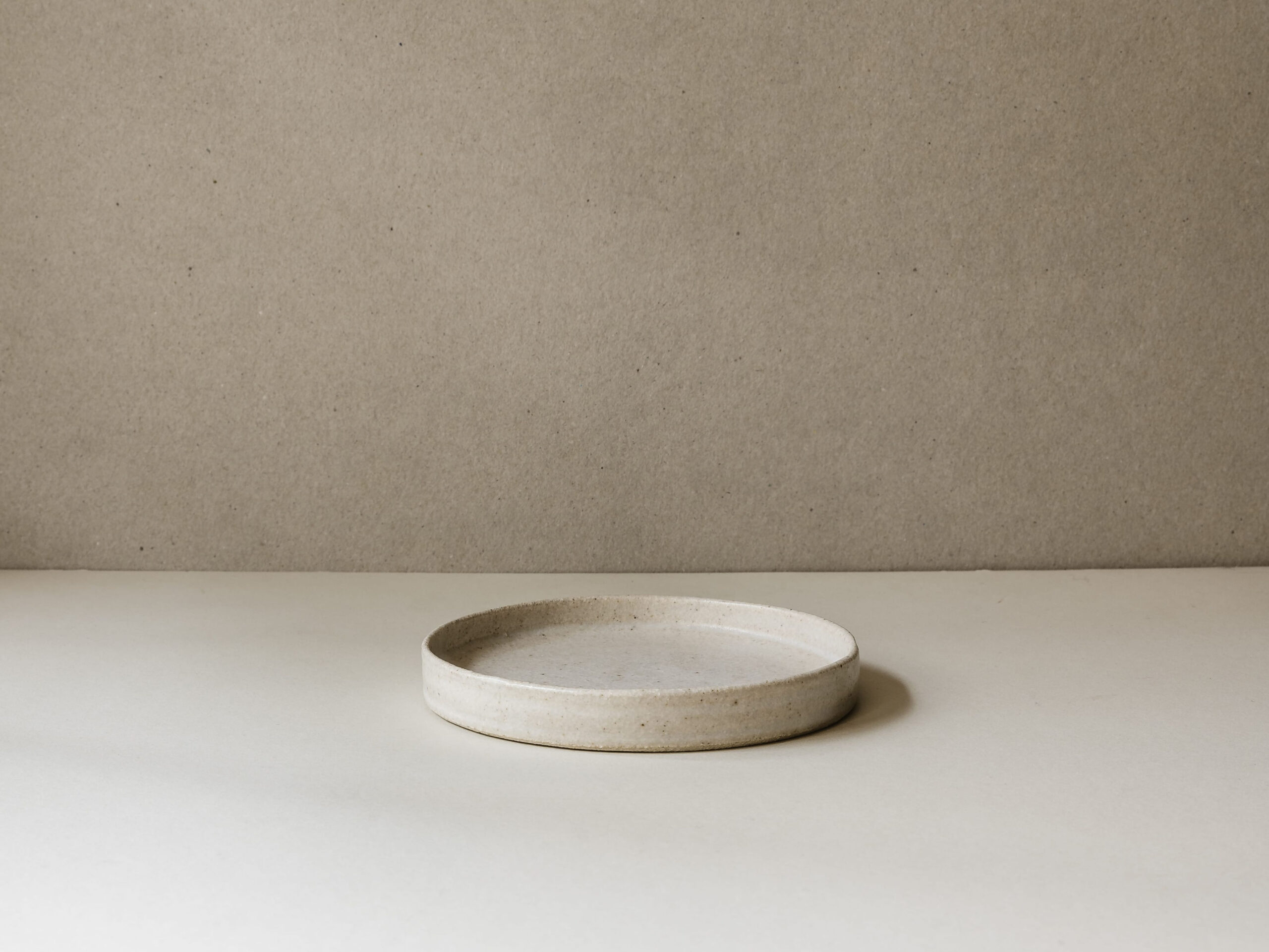 This beautiful matte oat coloured glaze used by Gillian for this collection of tableware has a distinctive crazed effect, which is more visible when the piece is heated or washed with very hot water.  Please note that the clay is completely impervious and fired to 1265°C.  This is just a decorative effect.