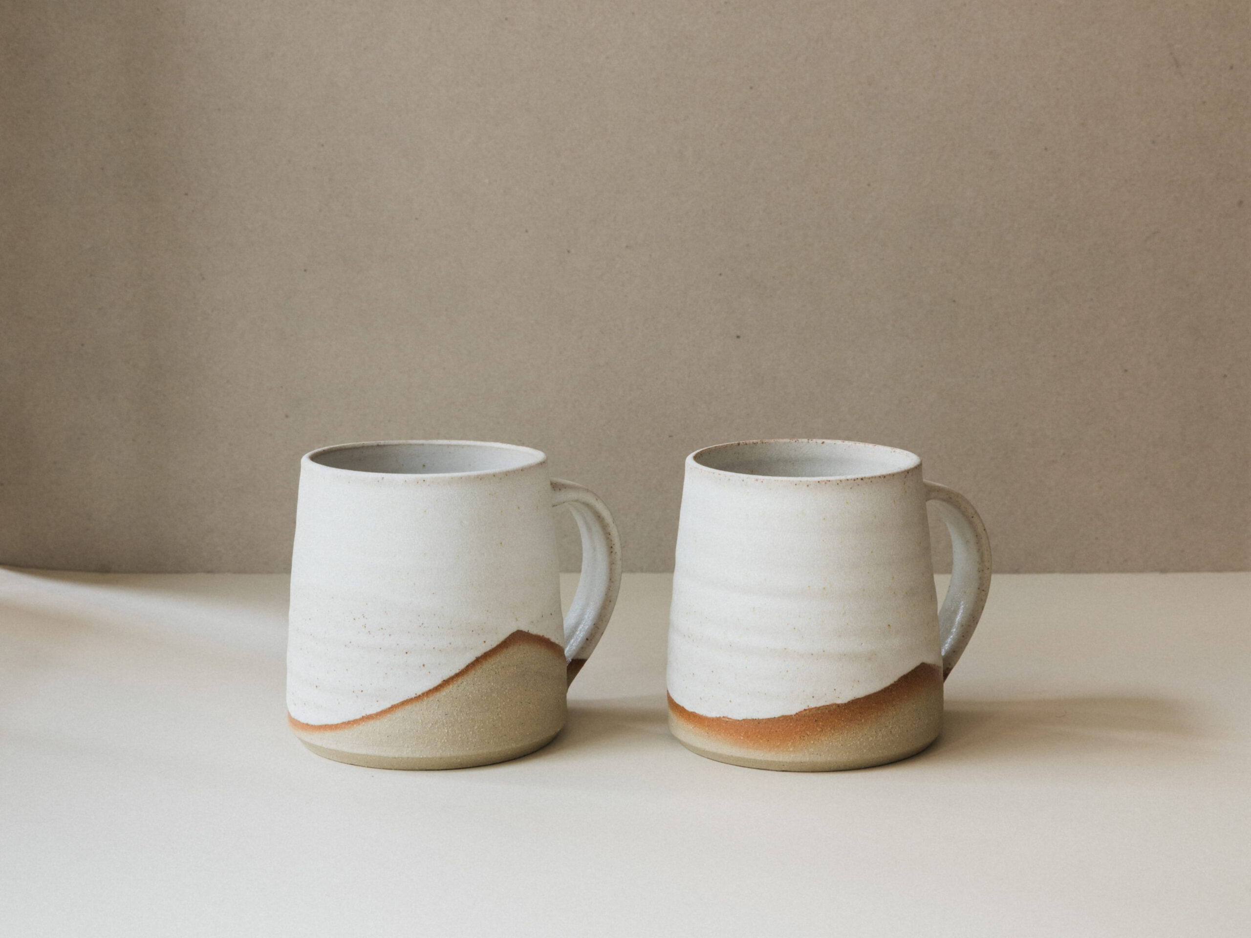 Hand-thrown stoneware cup with fully glazed interior, chalk white glazed exterior. The dipped glaze shape will vary, with no two pieces being the same. Approximately 85mm wide x 100mm high, made in Kent.