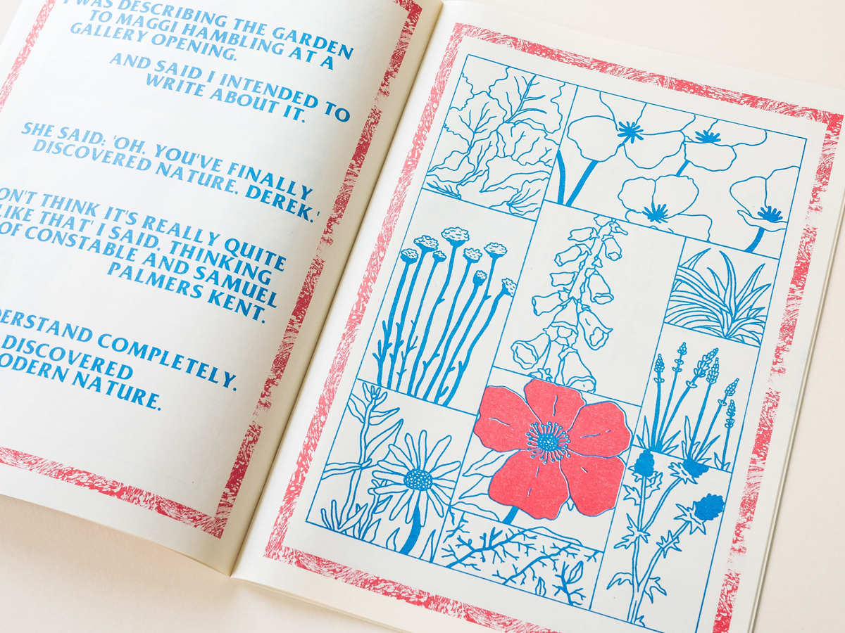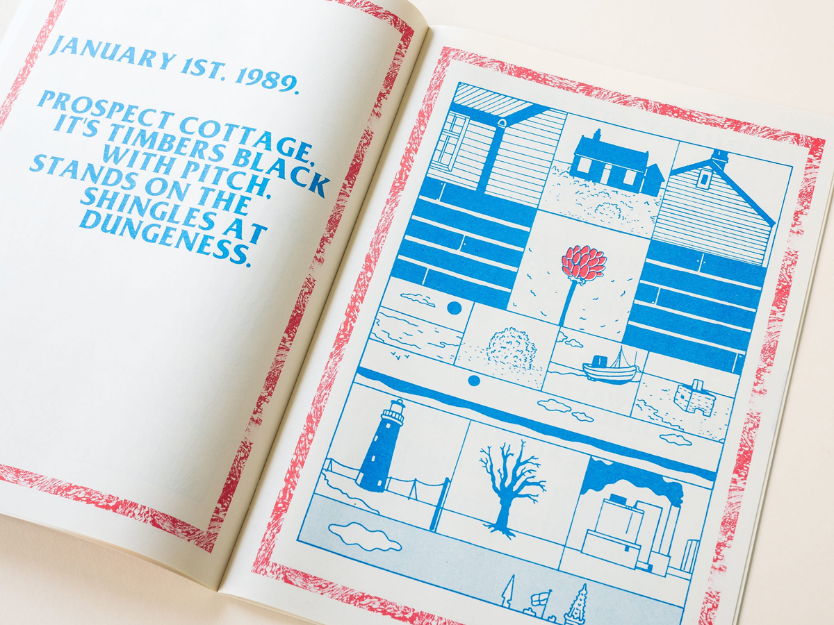 A 24-page A4 2 colour riso zine inspired by the diaries, films and art of Derek Jarman. Combining Derek’s diary entries with full page illustrations and comics of Prospect Cottage and his beautiful garden.