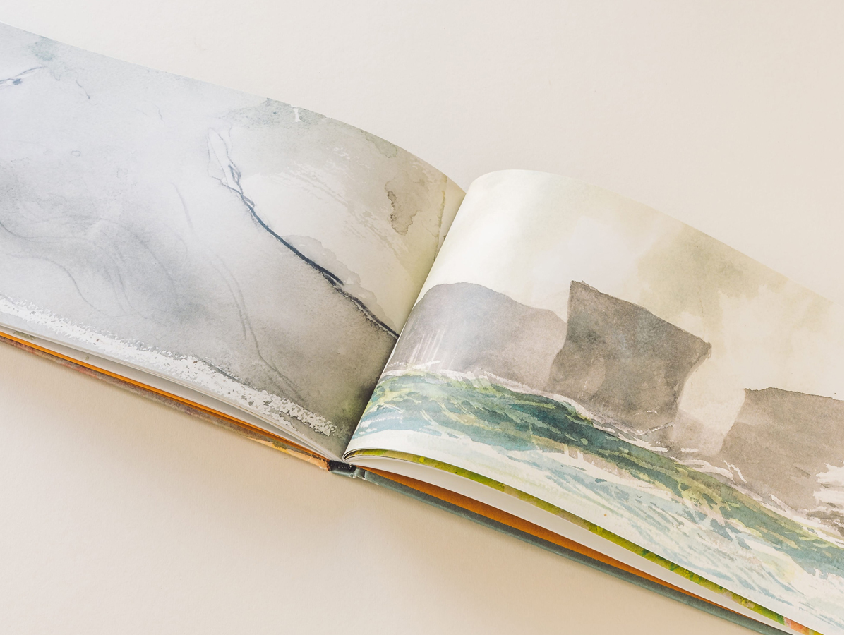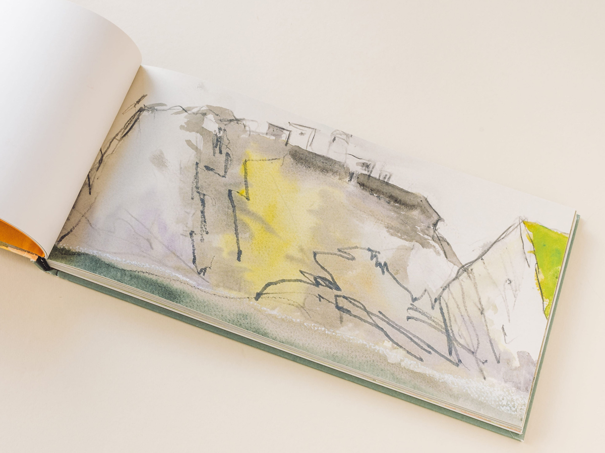 A Shetland Notebook contains 39 watercolours selected from journeys to the edges of the Shetland Islands in the spring and summer of 2012. Norman Ackroyd RA has spent more than half a century recording the coastal landscapes of the British Isles. With the assistance of local boatmen, he voyages to the remotest corners of Britain, often working from the deck of a small vessel, armed with nothing more than paper, paints, coffee and a mackerel sandwich or two. In his Bermondsey studio, Ackroyd uses his plein air studies as the basis for beautiful monochrome prints etched on copper.