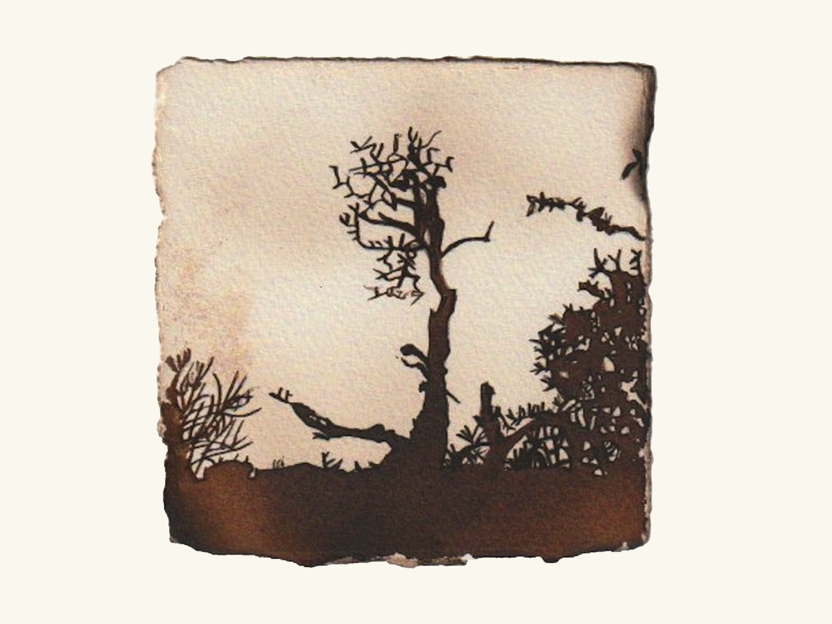 Aburidashi is the process of rendering an image using an invisible ink made from lemon juice. This alters the chemical balance of the paper, and on exposure to heat the image is burnt into the surface. This ancient Japanese method of secret communication is integral to both Kaori’s practice and to the meaning of her work.