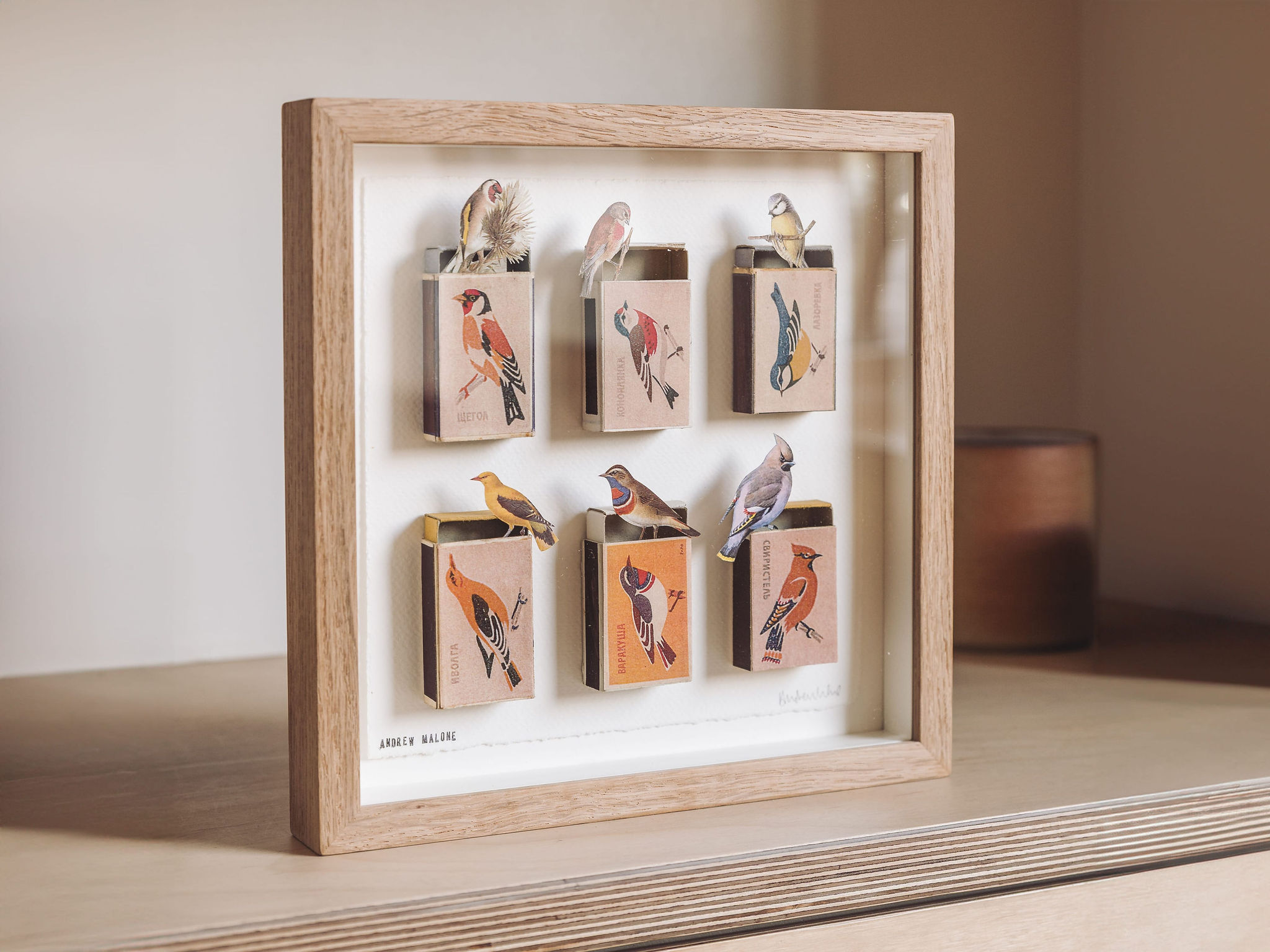 Box artwork, created with vintage matchboxes and cutouts from vintage nature books, 254mm x 254mm.