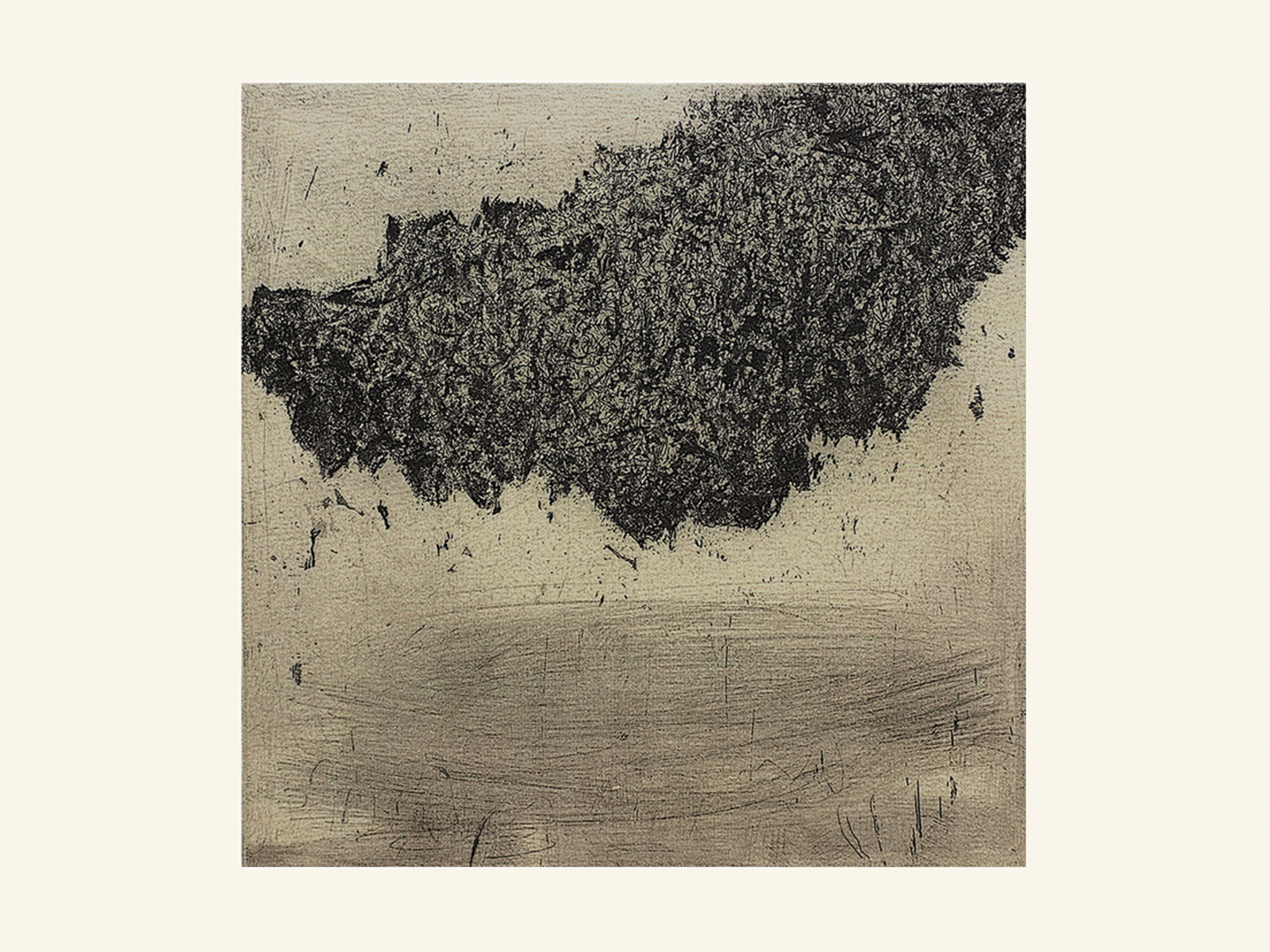 Lithography crayon lift, aquatint and drypoint on chine collé Gampi, printed on Somerset paper. Limited edition of 12. Signed, numbered and titled in pencil on the paper border below the impression. Paper size 280mm wide x 265mm high, printed image size 150mm wide x 150mm high.
