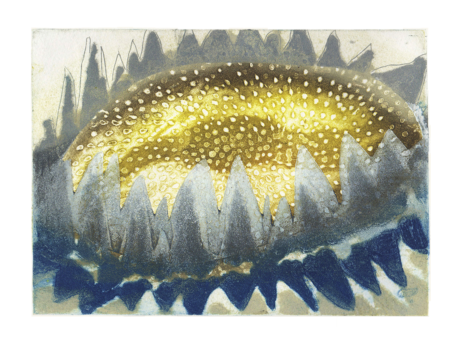 Collagraph and hand-coloured on Somerset 300gsm paper. Edition of 25. Numbered, titled and signed in pencil on the paper border below the impression. Paper size 400mm wide x 330mm high, image size 240mm wide x 180mm high.