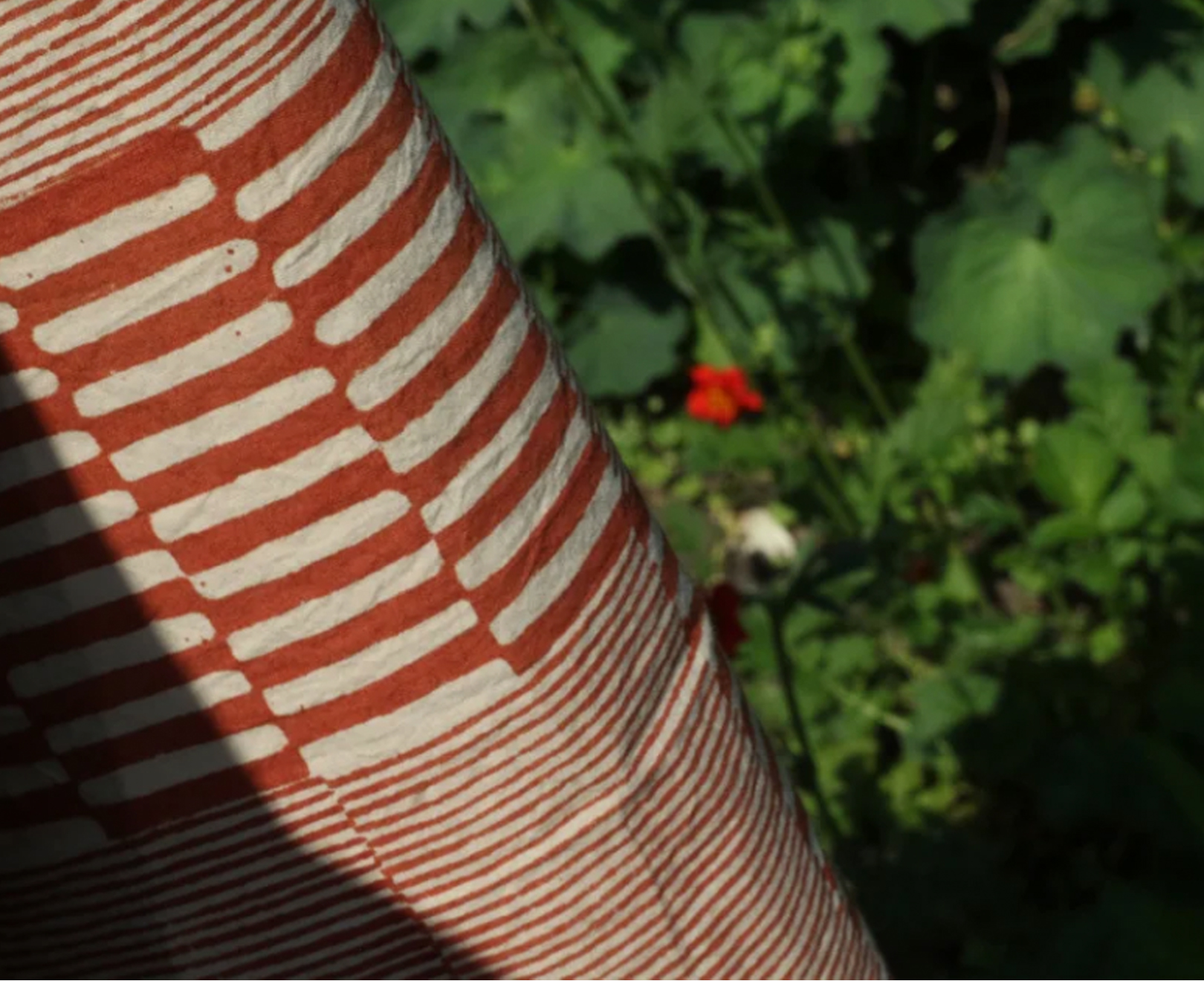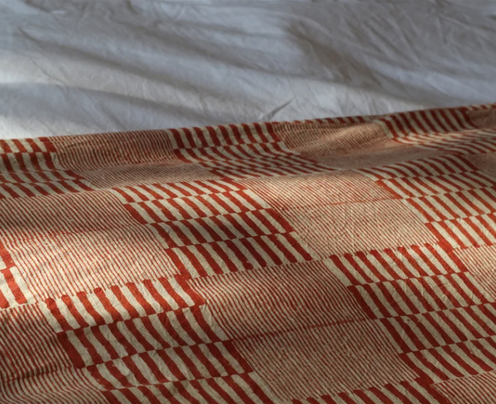 This throw is designed by Louisa Loakes, printed with a natural dye from the root of the Madder plant (Aal); a traditional colour used in Indian block printing.