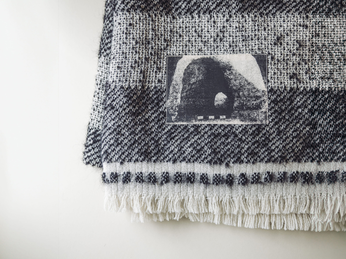 Cueva Beneito is a volcanic cave in La Palma. It’s long, black shimmering corridor covered in black lava stone inspired the creation of this monochromatic wrap/ throw.