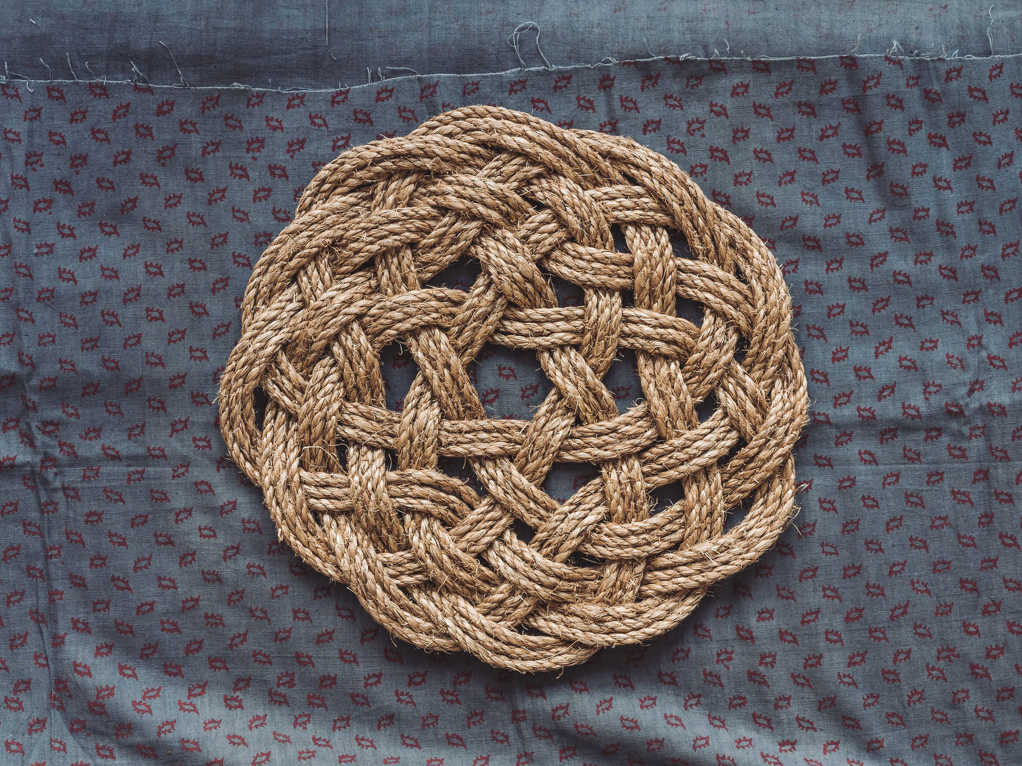These rope mat designs are based on a traditional sailor’s thumper, which would protect the cabin wall from the door slamming in a gust of wind.